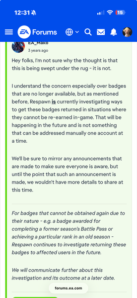 Lol here I am years later (which I saw coming) still without the battlepass badges I grinded for.
