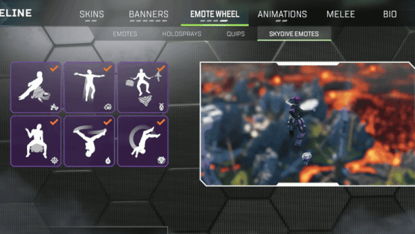 For some reason, I'm no longer able to use the skydive emote. After 3 years, I reinstalled the game, and I couldn't use my Lifeline emote. Even when I unlocked a new legend, the emote doesn't work. All other options (like holos and quotes) on the wheel work as expected.