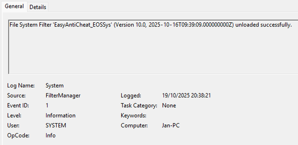 This always happens ~7 seconds after my PC unloaded the 'EasyAntiCheat_EOSSys' File System Filter and only ever with Apex Legends. Apparently it also crashes my Wi-Fi until I restart my PC (got ethernet though).