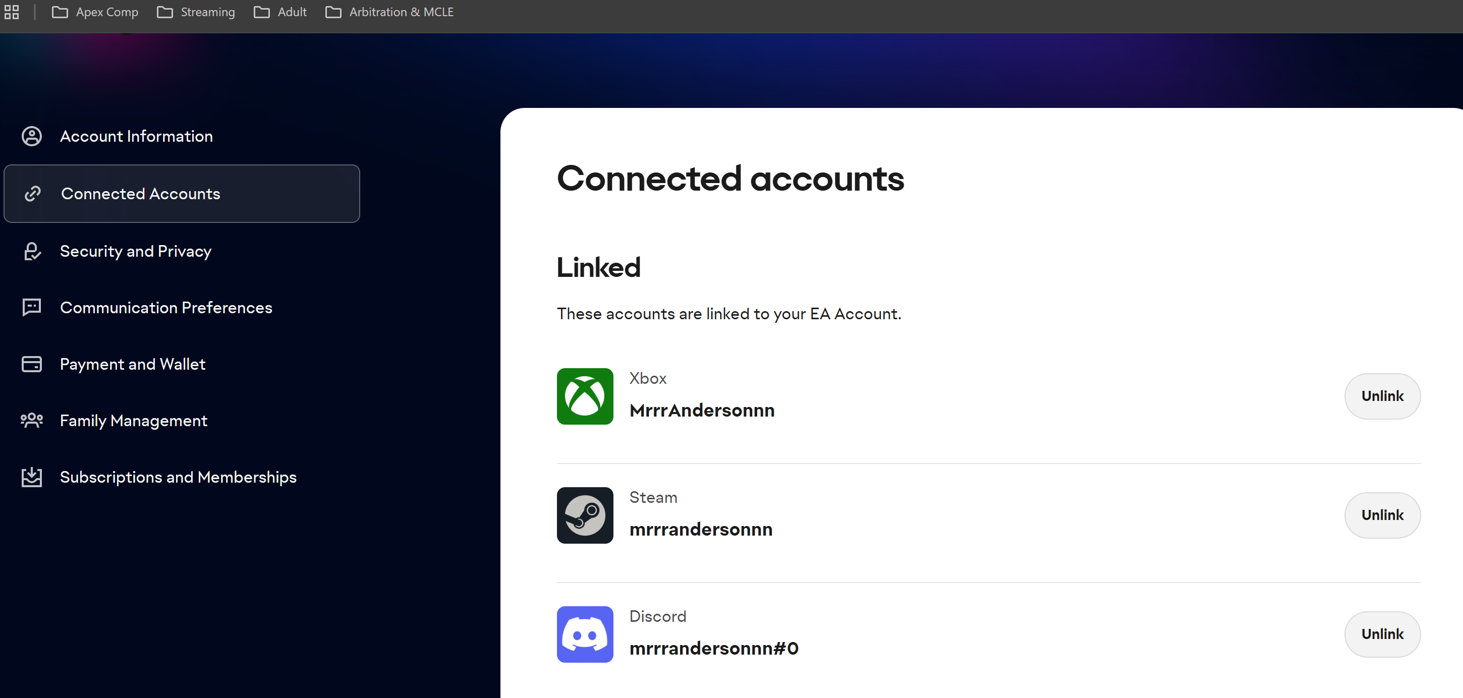 Context: My Steam account and Xbox account are both tied to my EA account. I do not have any other EA accounts, and I did not just add my Steam to my EA account. My Steam account was made in 2020. I tried playing Apex on Steam in 2022 for a few hours on my laptop. It did not run well on my 7 year old laptop, so I continued to play on console.