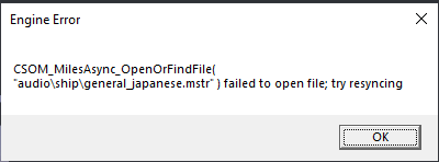 Engine Erro: CSOM_MilesAsync_OpenOrFindFile("audio/ship/general_Japanese.mstr" failed to open file;try resyncing