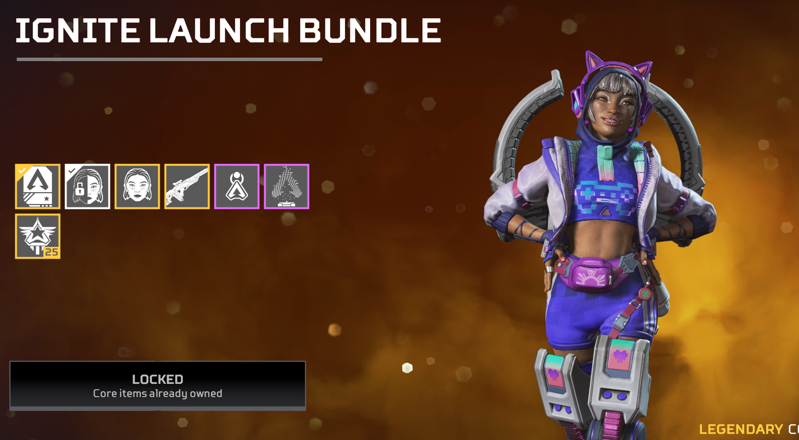 It appears my account might be bugged regarding the Ignite Launch Bundle, I had initially purchased the battle pass pre-order a few days ago (unknowing it'd grant the ignite launch bundle)