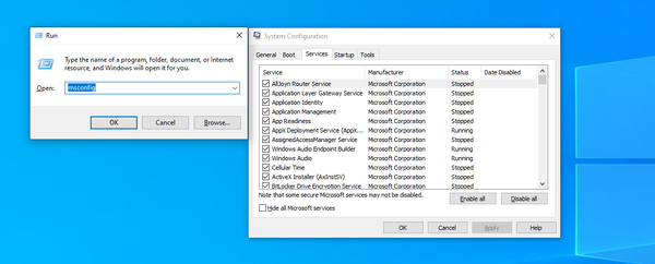 Press win key + R and put in "msconfig"