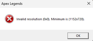 Just recently got a new computer and I was trying to launch Apex and it keeps giving me an invalid resolution error code. It happens everytime i try and launch the game.