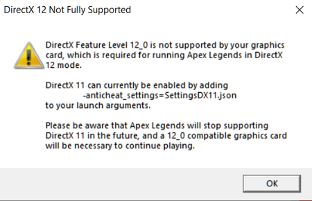 In this case, Apex Legends requires feature level 12_0 at the minimum for DirectX12.