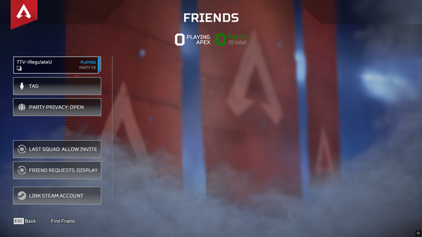 Im having the same issue rn. I was playing rank and during mid-fight i received this error code about memory dump. After that I could play the game but can't invite/see/add anyone from my friends list. It shows 0 online and 0 playing. There goes my pred grind....... EA_Brickto1 EA_eircon EA_UltraSlide EA_Shrike EA_Cekiel EA_Gordo please look into this. This game is not fun grinding solo. Thank you.