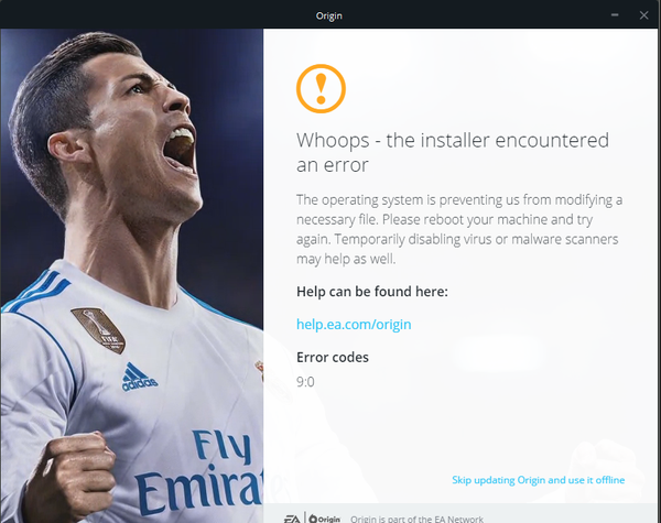 1. First downloaded the origin file and tried install, didn't work. (same error around same time)