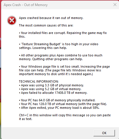 I have once got this error which is wild to me that it's somehow trying to allocate that much memory, but open to all suggestions.