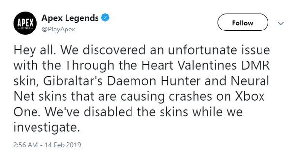 Source: https://twitter.com/PlayApex/status/1095879539505295360