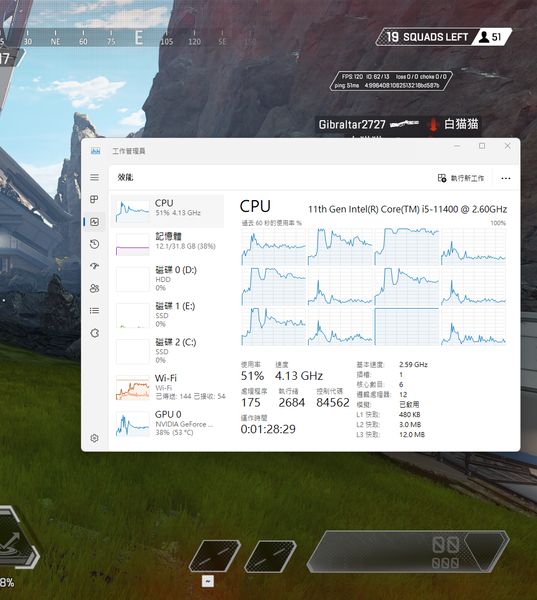 I’m reporting a persistent micro-stuttering issue in Apex Legends that has made the game difficult to enjoy. After extensive troubleshooting, I’ve pinpointed a specific behavior: one single CPU thread consistently hits 100% usage (while overall usage is normal). Additionally, the "System" process in Task Manager sometimes spikes above 20% during these stutters.