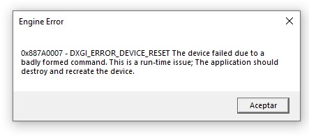 Buenas, tengo un problema desde hace un tiempo con Apex Legends, se me cierra al jugar despues de varios minutos, a veces de forma continua, me sale el siguiente error que dejo adjunto, las especificaciones de mi pc son: