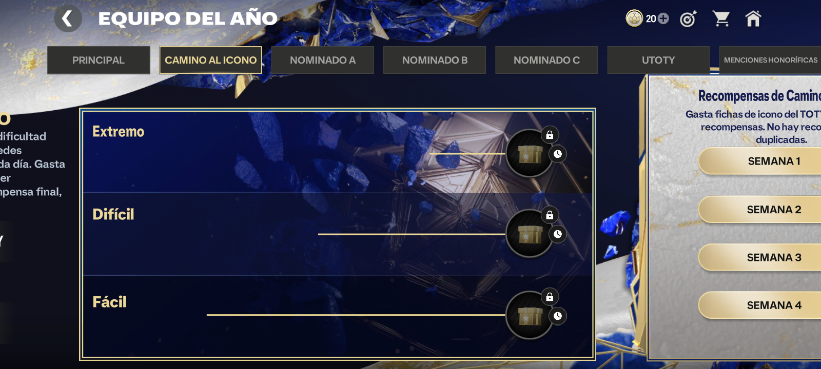 No aparecen los partidos y juegos de habilidad en el evento del TOTY en la sección de camino al Icono.
