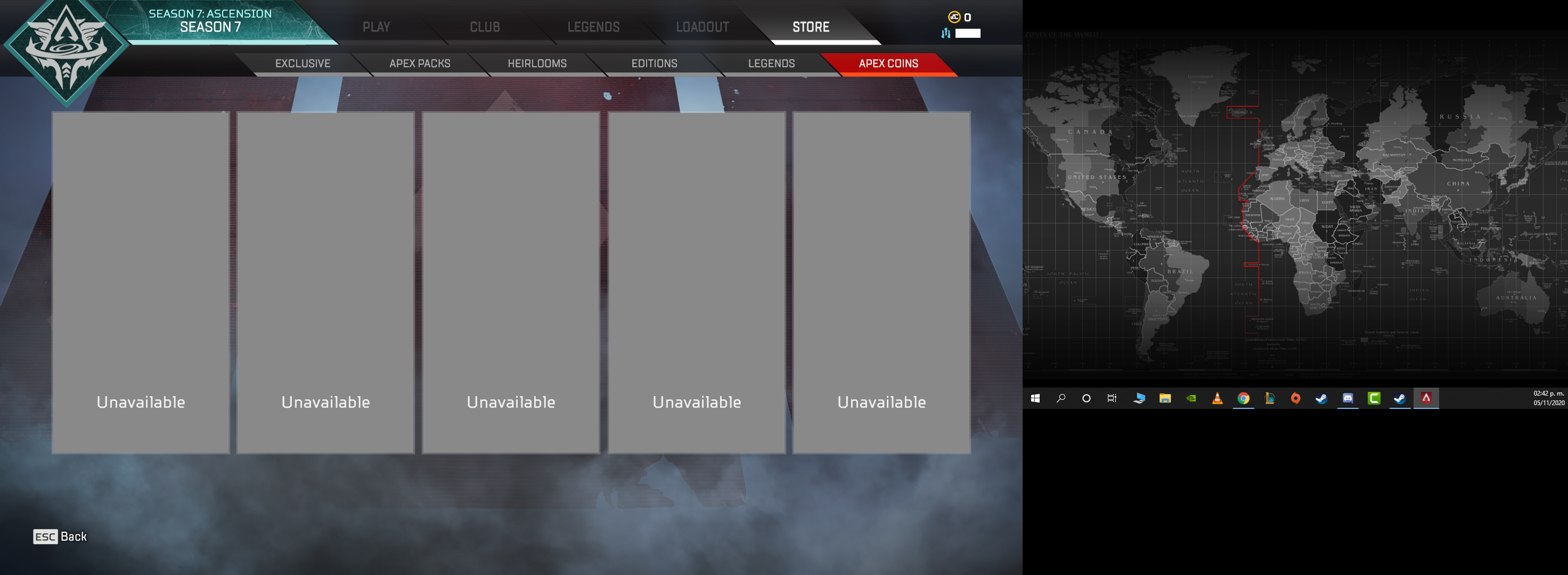 ¿Qué pasa cuando se produce el error? Como se muestra en la imagen adjunta al momento de entrar en la ventana de comprar apex coins estas no se encuentran disponibles