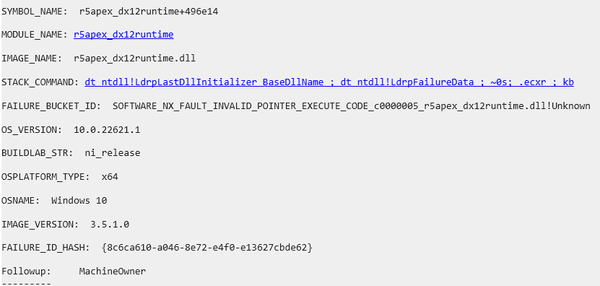 Problema al iniciar Apex Legends - Crash Report Handler - r5apex_dx12runtime
