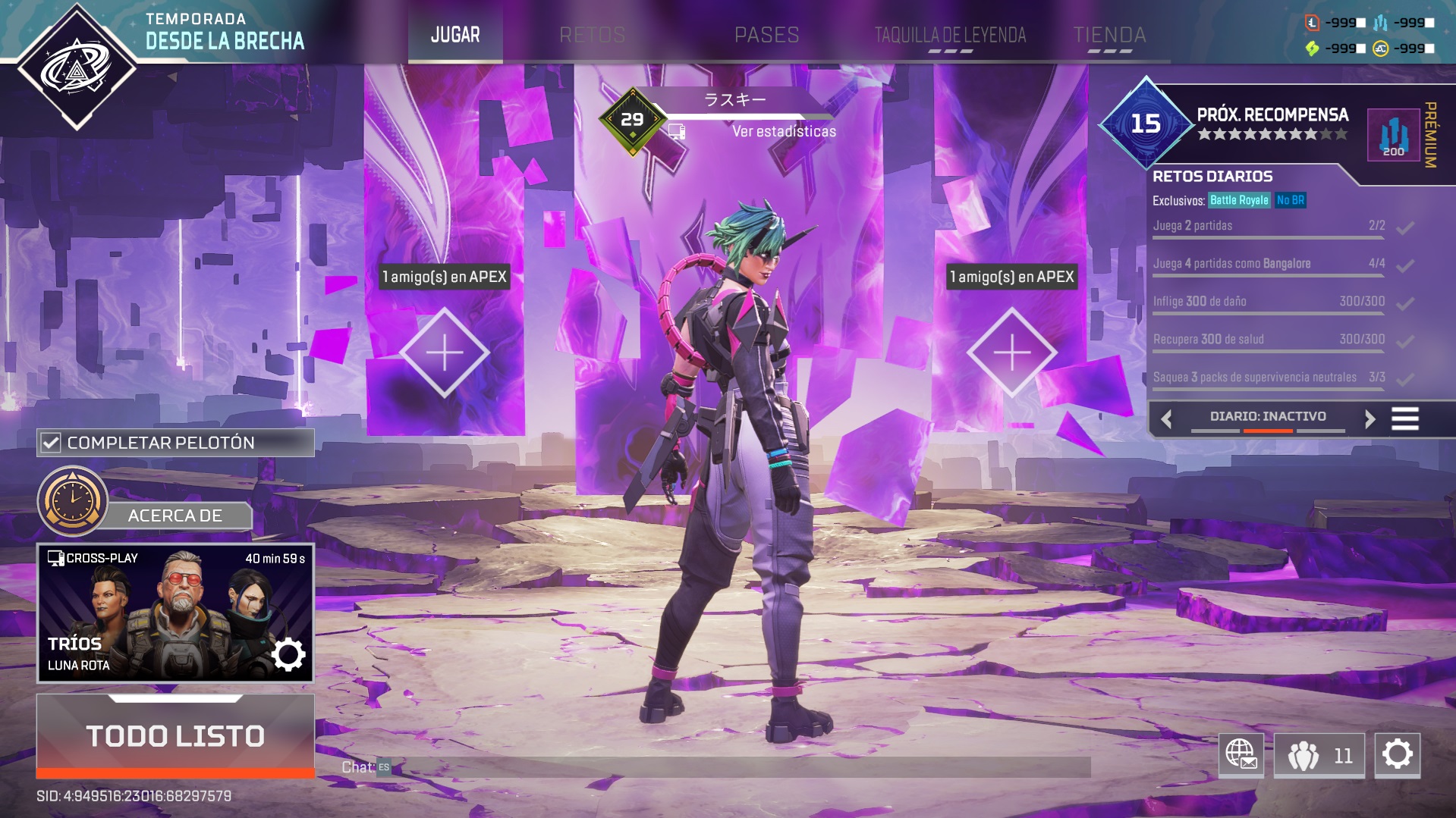 Tengo monedas negativas en Apex desde este mismo día, lo único que puedo hacer es buscar partida pero las misiones diarias no se actualizan (se queda pillado en las que hice ayer), jugué unas pocas partidas y vi que me dieron 2 estrellas en el pase de batalla (supongo que por la misión de jugar 2 partidas) pero no puedo hacer las otras misiones por eso