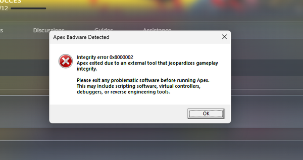 Bonjour j aimerais joue a apex mais un message d'erreur s'affiche j ai deja tous essayer comme regarder si il avait des logiciel de triche ou des macros je n ai rien est tjr le message merci de bien vouloir m aider Aurevoir.