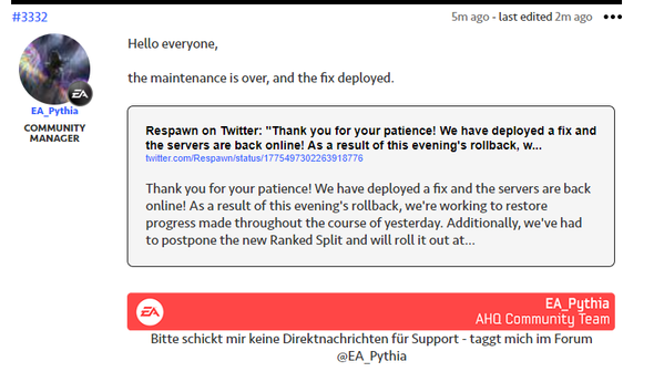 Je viens de perdre absolument toute ma progression (j'avais presque tout réalisé sur le pass pour toutes les étapes) ainsi que mes pièces apex (2000) des niveaux et des personnages débloqués, presque comme si j'avais un nouveau compte.