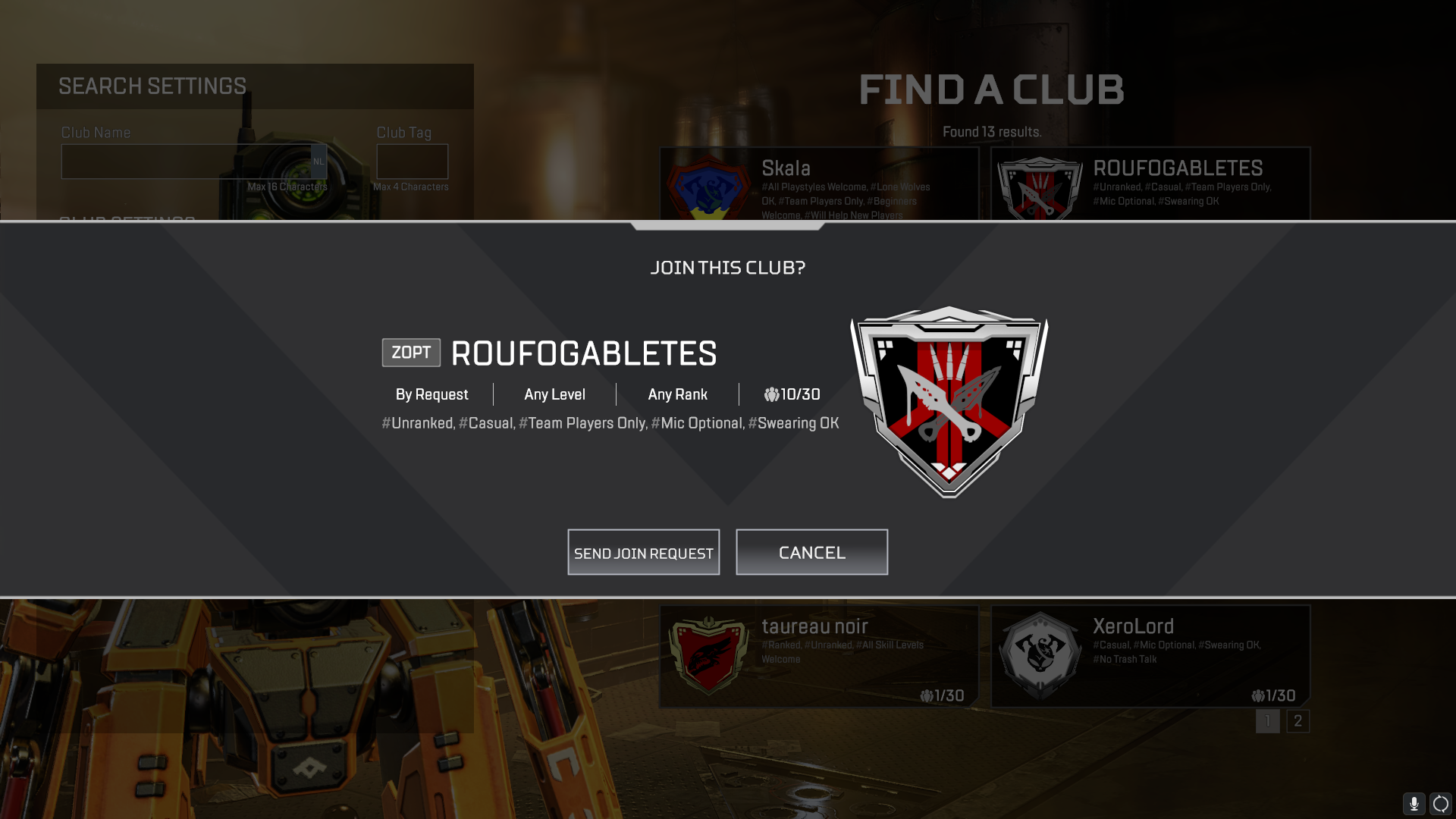 op foto 1 is te zien wat ik krijg ook al zit ik in een club en 2 is de club waar ik op dat moment al in zat en het enige wat ik kan doen is een request sturen ook al zit ik erin. ik kan niet comuniceren of wat dan ook met de club functie. ik kan ook niemand anders vinden met precies hetzelfde probleem.