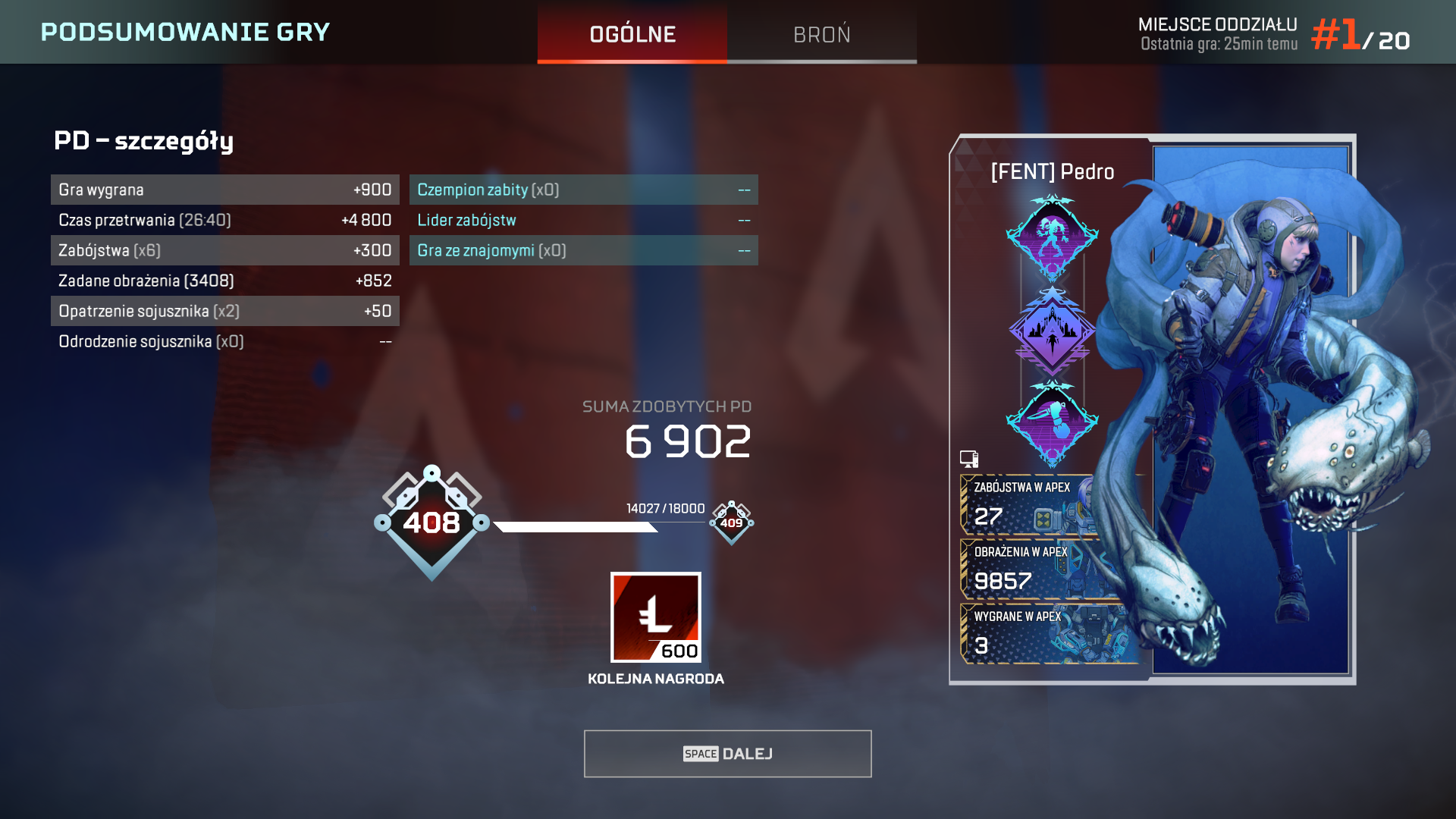 Co się dzieje? Grając postacią Wattson w trybie klasyczne royale zrobiłem 6 zabójstw , 7 asyst oraz 3408 obrażeń. Po skończeniu wygranego meczu nie otrzymałem odznaki.