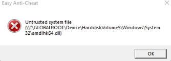 На видеокарте АМД игра вылетает каждый раз когда включается карта место бури. Помогало очистка кеша шейдеров, но теперь и это не помогает. Иногда дает ошибку античита amdihk66.dll, как ее исправить тоже не понимаю, сам античит не запускается. Приходится восстанавливать фаилы через стим. Когда разработчики данного продукта выпустят фикс?