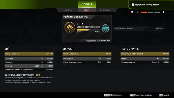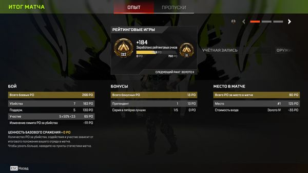 • Чтобы получать больше РО, нужно после высадки постоянно наносить урон другим игрокам в течение всего матча, практически без передышки. Неоднократно проверял и это работает! В первой катке результат был 6 6 7, включая содействия в таблице результатов, нанесенный урон 1400. Дали 239 РО, потому что были большие паузы между сражениями. Во второй катке 2 3 3, нанесенный урон ~1100. Дали 712. Указанные значения соответствуют таковым и у моих тиммейтов (чтобы исключить варианты, при которых мой собственный итоговый балл  был получен за счет более умелой игры членов команды). В обеих играх мы занимали первое место. Видимо, есть скрытая система подсчета РО, на которую влияют помощь и содействия, а так же другие переменные, даже если они не учтены в таблице.