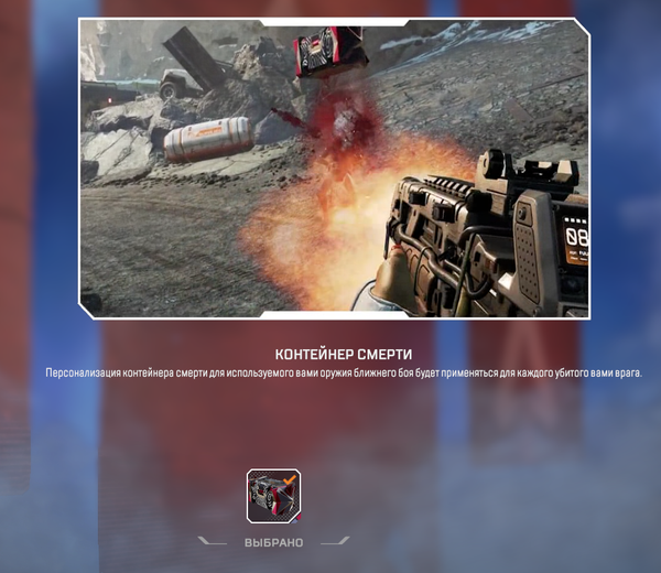 Выбил я значит реликвию и купил коготь хищника + за 10 зеленой валюты купил скин на контейнер смерти. Почему при убийстве врага появляется обычный белый контейнер? хотя в главном меню написанно что выбран