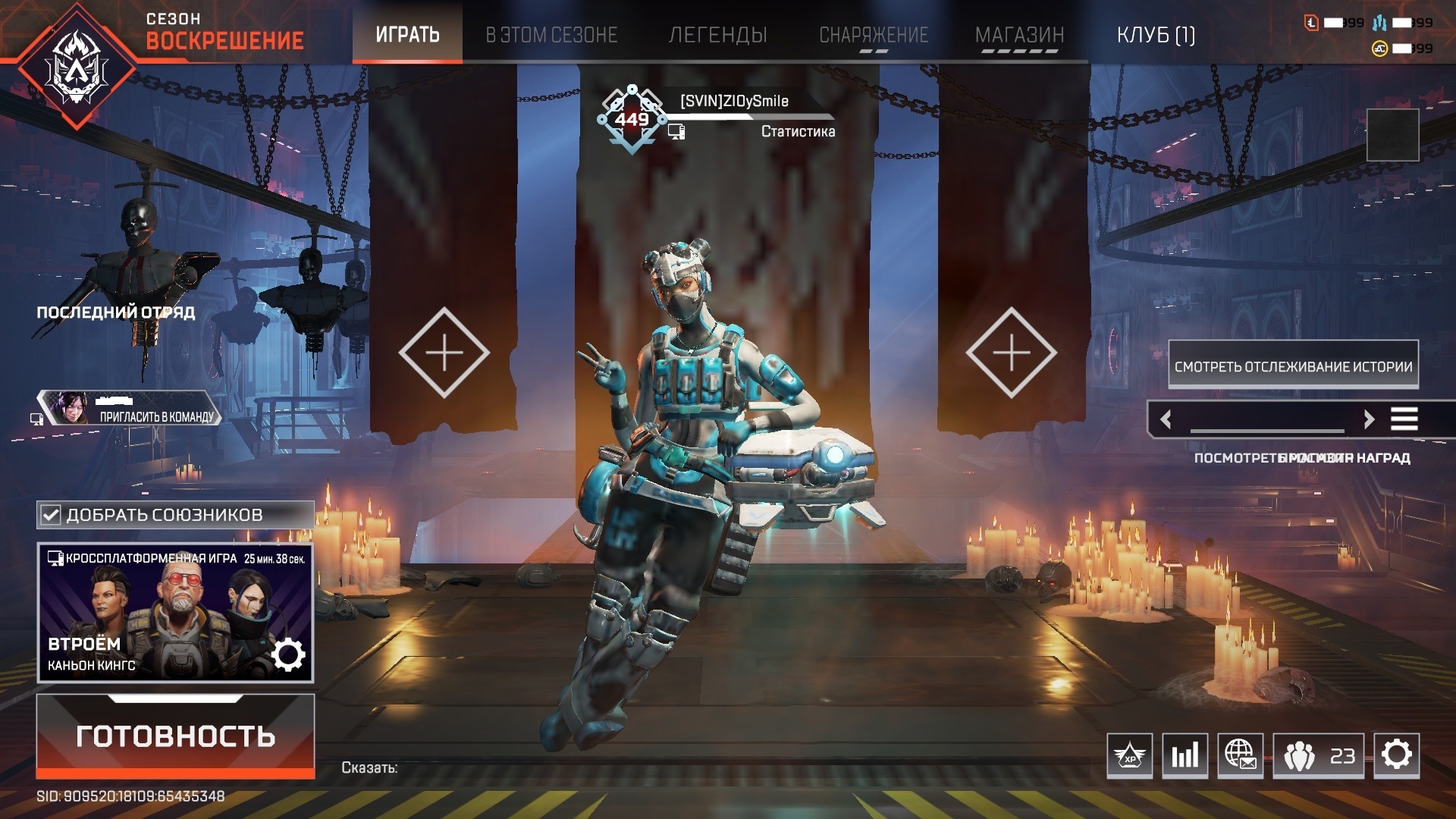 Нет, у меня вообще проблемы с игрой на основном аккаунте. Лобби полностью зависает, затем появляется системная ошибка приложения. На той неделе был какой то бред, написали, что я покинул клуб и опекун запретил мне пользоваться в этой игре средствами связи 😃