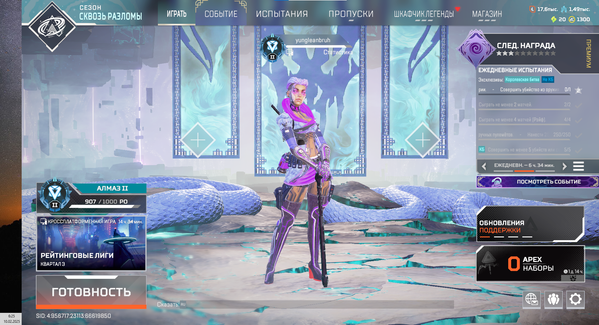 ( 8m 57s ) Visitor: It's just that there's less and less time left for 12-13 hours... to up master rank.. and my rank has dropped to beginner 4..... What is the bug? I even unlinked my PSN.. mb its crossplatf bug? idk, im not play on PS apex)