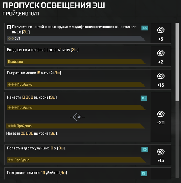 не работает прогресс задания на Эш35 матчей на ЭШ сыграно с начала этого сезона (купил за 1000 монет пропуск ЭШ)
