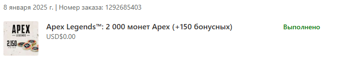 Здраствуйте! Активировал в Microsoft код на "Apex Legends™: 2 000 монет Apex (+150 бонусных)". Статус кода изменился на "Выполнено", однако монеты на аккаунт не пришли. Аккаунты EA и Microsoft связаны, я проверял.