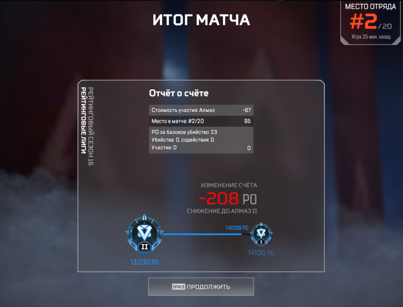 2 игра дали -208 поинтов в игре где меня и команду выкинуло в лобби из-за 100 loss