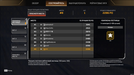 Пока были первые рейтинговые лестницы я забрался в высшую категорию чемпионов лестницы и когда они закончились остался в ней же, но когда я зашел за наградами, мне выдали награды как за вторую катего...