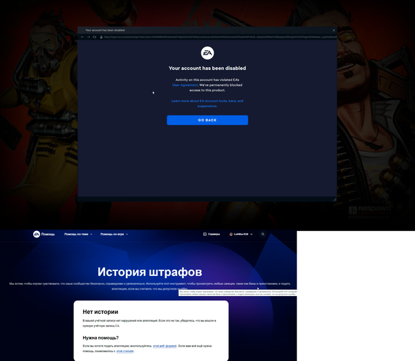 Это последнее место где я хоть как то могу связаться EA для решение своей проблемы. Я написал эту стену текста с картинками в надежде, что служба поддержки EA хоть, что то сделать. Только не надо банить аккаунт полностью