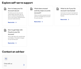 Кто нибудь знает как обратиться в поддержу EA для помощи в восстановления аккаунта? Недавно вернулся с армии и узнал, что мой аккаунт был отвязан и взломан с оригинальной почтой. В тех поддержку гугл я запрос уже отправил, а вот в EA я так и не нашел. Причем у меня есть вся информация о восстановление аккаунта, но я просто не могу им нигде написать. https://help.ea.com/ru/customer-care вот про эту бесполезную хрень можете даже не писать, она просто не работает. Есть ли какие нибудь ещё варианты связаться с ними?