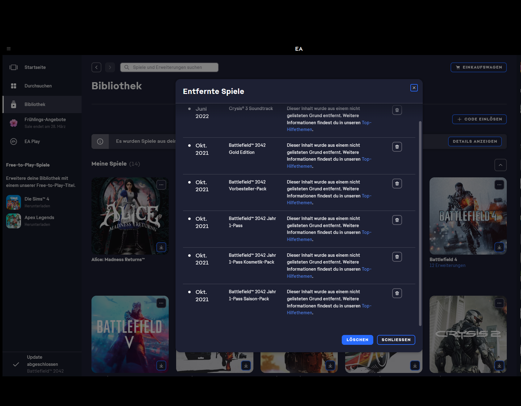 BF 2042 Wurde aus meiner Bibliothek entfernt ?