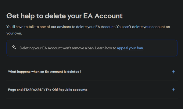 I'm trying to delete my account and I can't find any help, I already tried to contact support trough Help and they don't even answer me, after I got banned in BF 2042 for cheating (a mistake of EA, as I was not cheating) I want only to delete all my data and never touch or buy any EA game again.