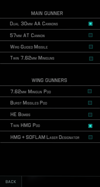 HE bombs. Just like in stealth heli, but weaker. It also slows down the gunship