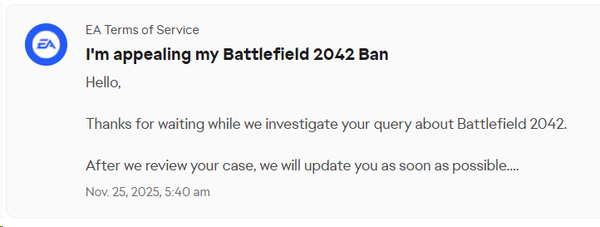 Today i thought that i'm going to give a try and play BF2042. So i bought the game, made EA account and started playing. Did tutorial part and were able to play ONLY one Conquest with bots and i was banned.