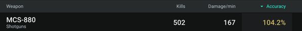 @ForumUser I find stats unreliable. On TRN’s it lists me as having 77,5% HS on 435 kills with the DXR-1. And 104% accuracy with the MCS-880 on 510 kills.