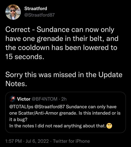 Sundance nerfs on Update #1.1.0 (Scatter Grenade 2 > 1)