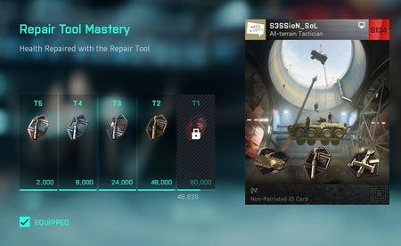All in all, I just think that if the repair tool Tier 1 is going to be that high, it should have a skin or effect to go with it to justify it being that high. Also, I don't believe you understand just how dreadfully slow it is to reach Tier 2, I reached it without tracking it but when I saw the number for Tier 1, I can tell you right now, less than 1% of the people playing 2042 have it Tier 1'ed without abusing, the Tier 1 milestones just feel really random.
