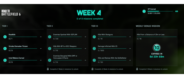 Recent DiscussionsRecon Phantom Skin easter egg As title -- has anyone managed to solve the Easter Egg for the BF2042 Recon Phantom skin ?? (Assault/Engineer/Support have already been solved) Disabled account My gaming account has been disabled but while checking for penalties it shows that I don't have any penalties. And the game is still disabled.what should I do. Re: Is it me or anyone else constantly in defensive side in Break Through Mode? Same here, It's so annoying, while matchmaking they should let us change faction, even if just 1 time, not that the game needs that, but, like you, i'm always in defense side, and in objectives like ...Breakthrough Server At some point Dice is going to need to allow for portal full xp experiences or stop creating more breakthrough servers when the exisiting aren't full to begin with. I am so sick of having a solid ser...Weekly missions - Week 7 So here are the final missions for the free road to Battlefield six battle pass. Week 7 missions are here.