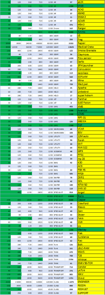 Current state below - at the moment looking at T1 for wildcat and sticking with the XM8 where I can until I get T1. I know that I should rank up the weapons against bots, but it is so boring (I hear you - not as boring as tracking with a spreadsheet eh?)