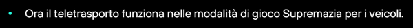 ( Inizialmente il video mostra che il teletrasporto funziona correttamente nella modalità "DeathMatch A Team Con Veicoli" e successivamente mostra che il teletrasporto NON funziona correttamente nella modalità "Superiorità Terrestre". )