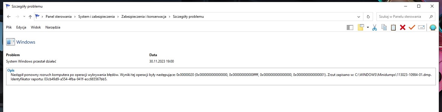 Poproszę Cię jeszcze o sprawdzenie jakie błędy pojawiają się w "reliability monitor", na krótko przed wyłączeniem siękomputera.