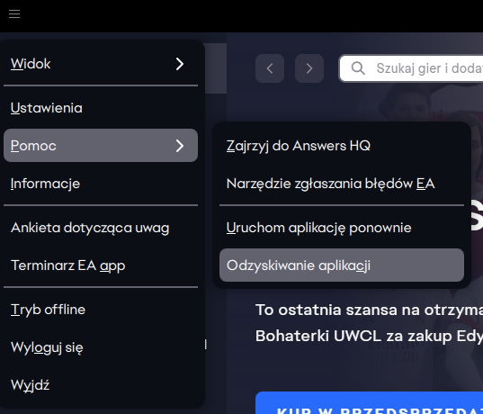 Na start spróbuj wyczyścić pamięć podręczną EA App oraz skorzystaj z wbudowanej funkcji naprawy gry.