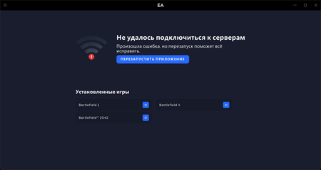 Не грузит ничего Не 2042,ни ЕА Аpp,Я незнаю разработчики либо вы Русским Сказали:Все Давайте вы больше не играйте в наш игры,либо это тех неполадки