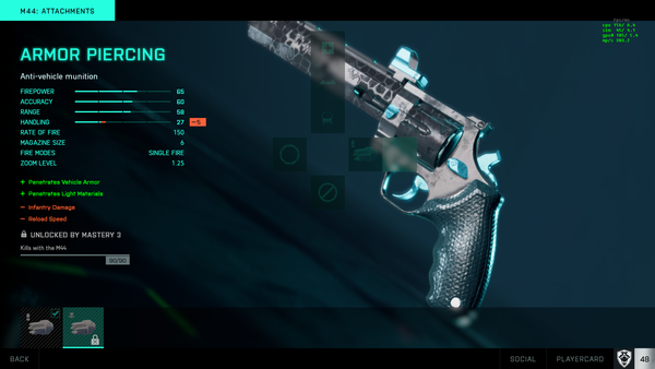 Steps: How can we find the bug ourselves? Achieve at least 90 kills with the M44 revolver to unlock the armor piercing ammo, and go to attach it.