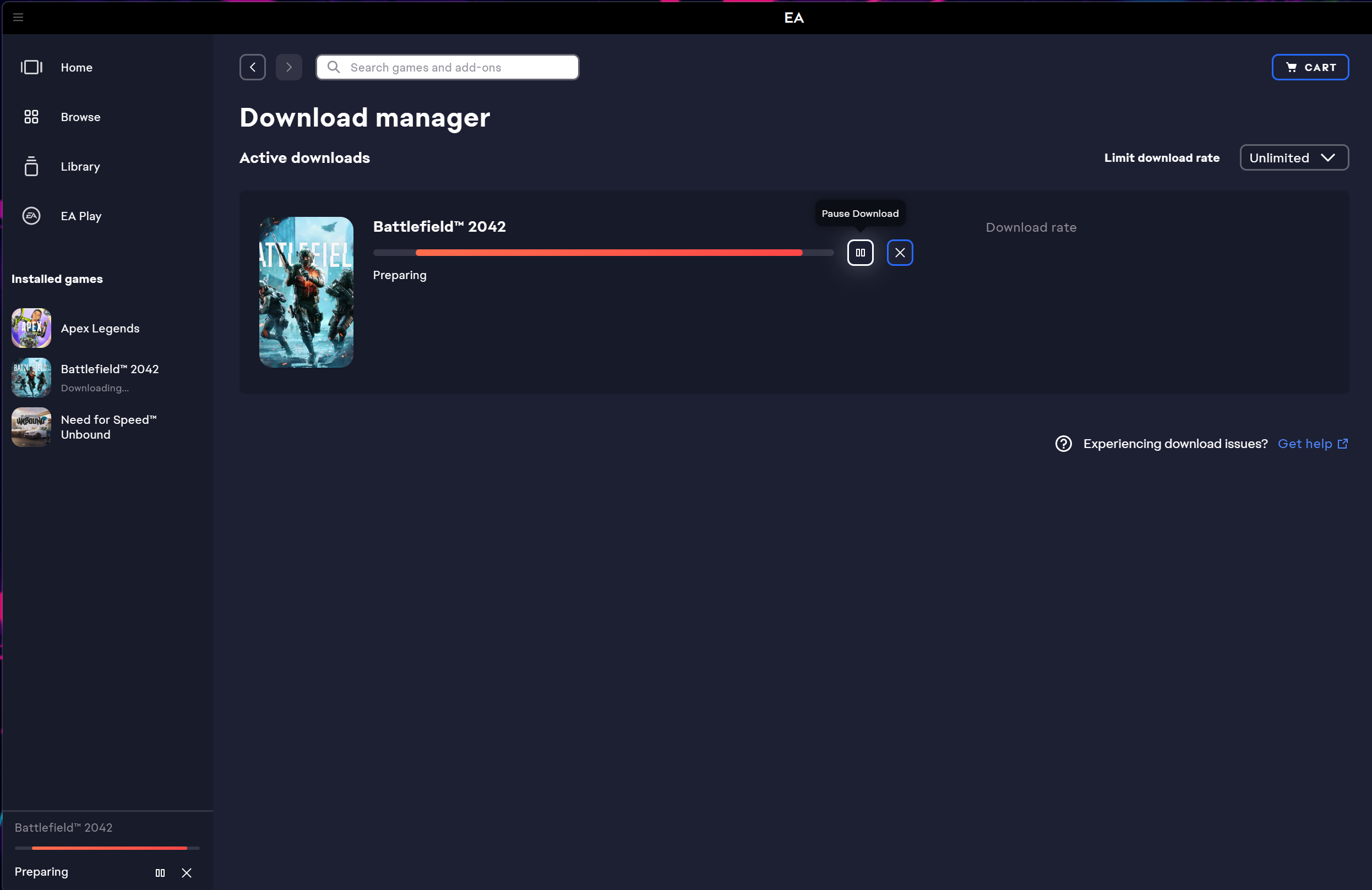 Battlefield 2024 stuck on preparing and cannot download it