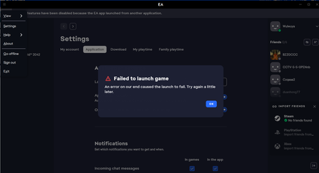Hi guys. When I launch Battlefield 2042, it will crash and tell me "EA app launched from another application", "Failed to launch game", "An error on our end caused the launch to fail" like the screen...